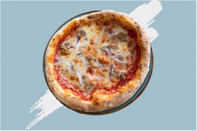 White base with Fior di Latte Mozzarella Cheese, Tobiko, Edible Flowers, Poached Rock Lobster Tail, Broccolini