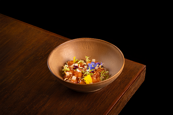 Salmon dice, horseradish mayo, ikura, pickled daikon, crispy wild rice