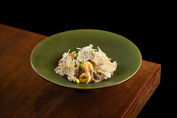 Gnocchi with truffle cream, sauteed mixed mushroom, parmesan chips, edamame